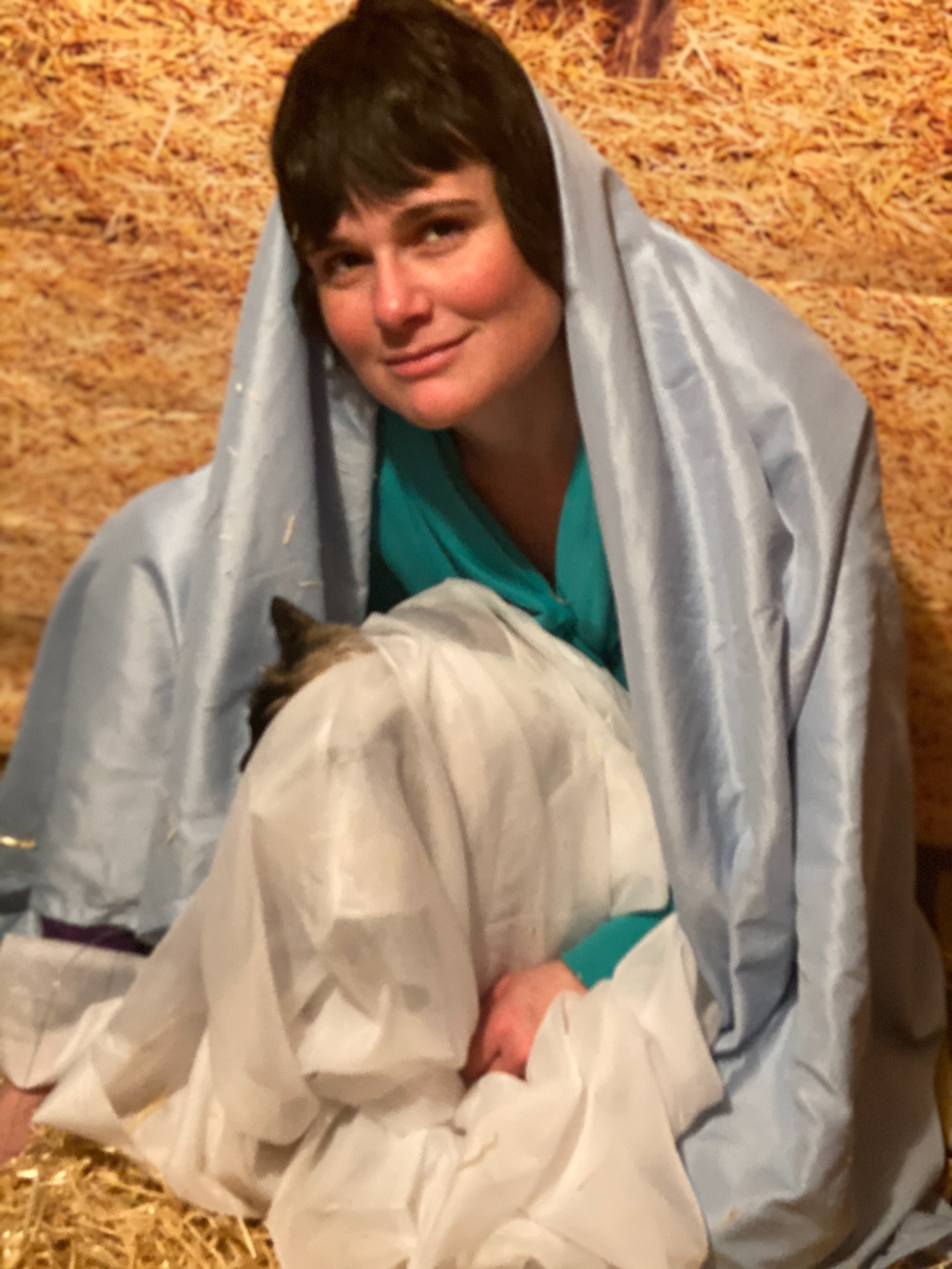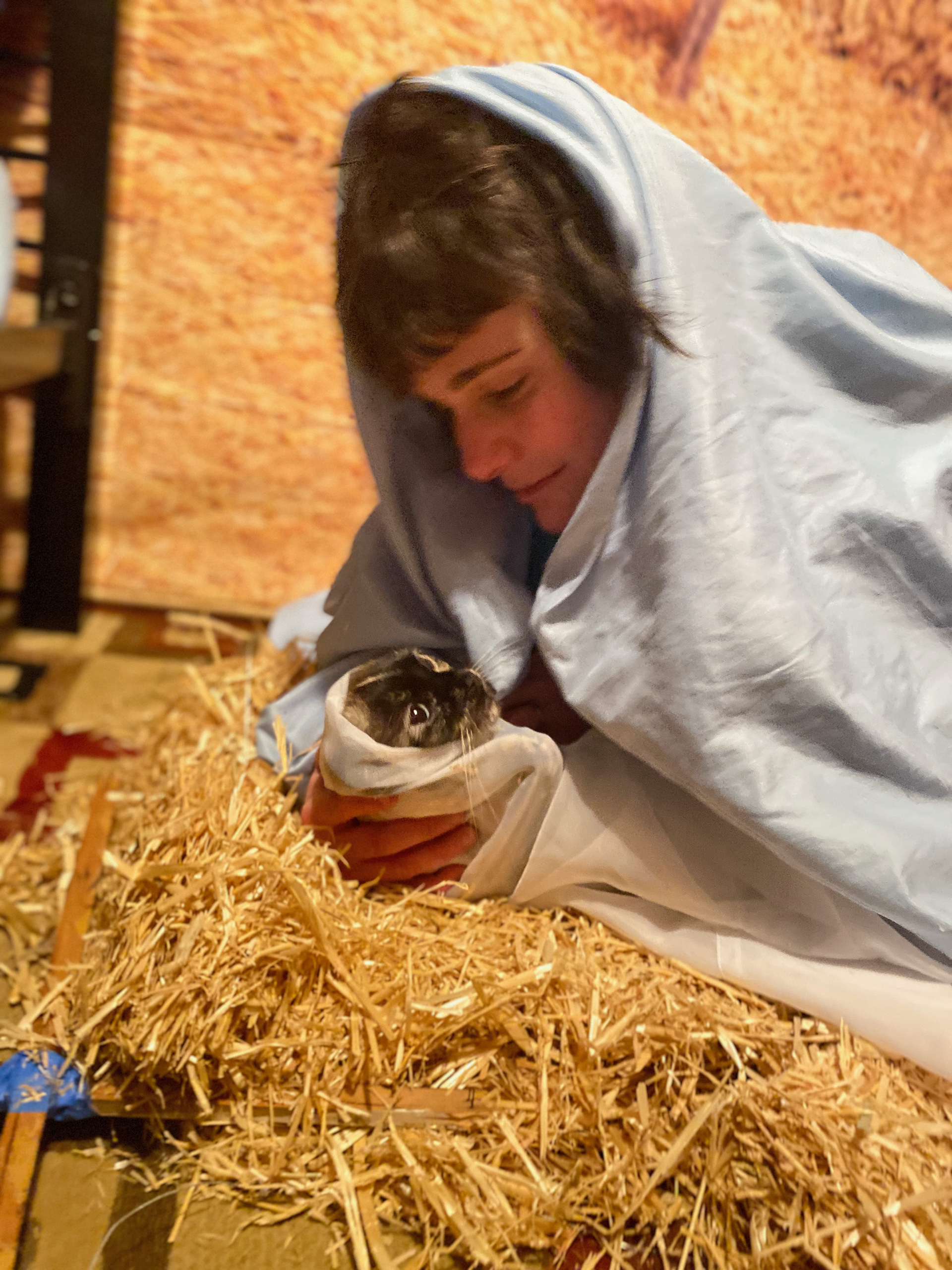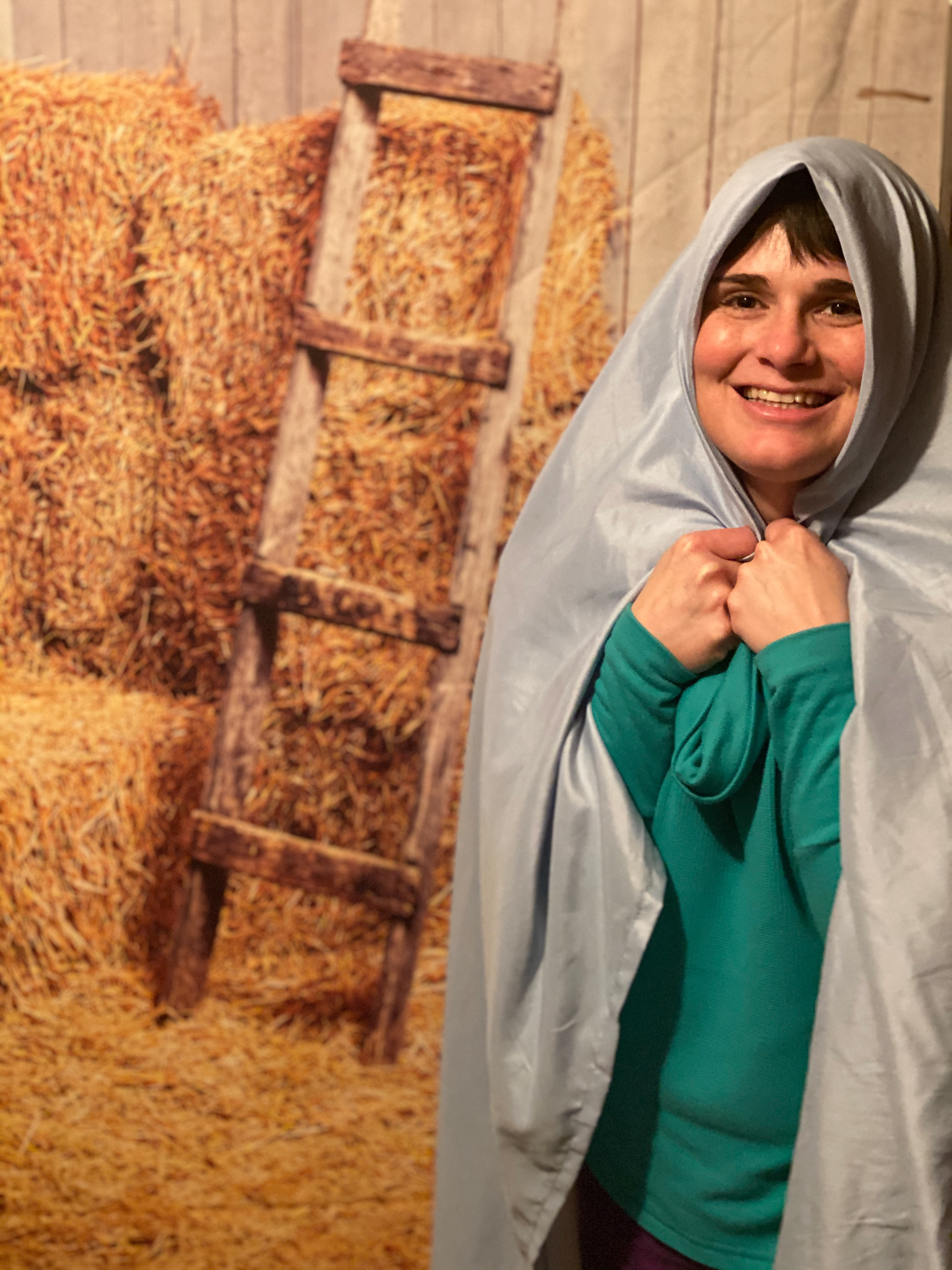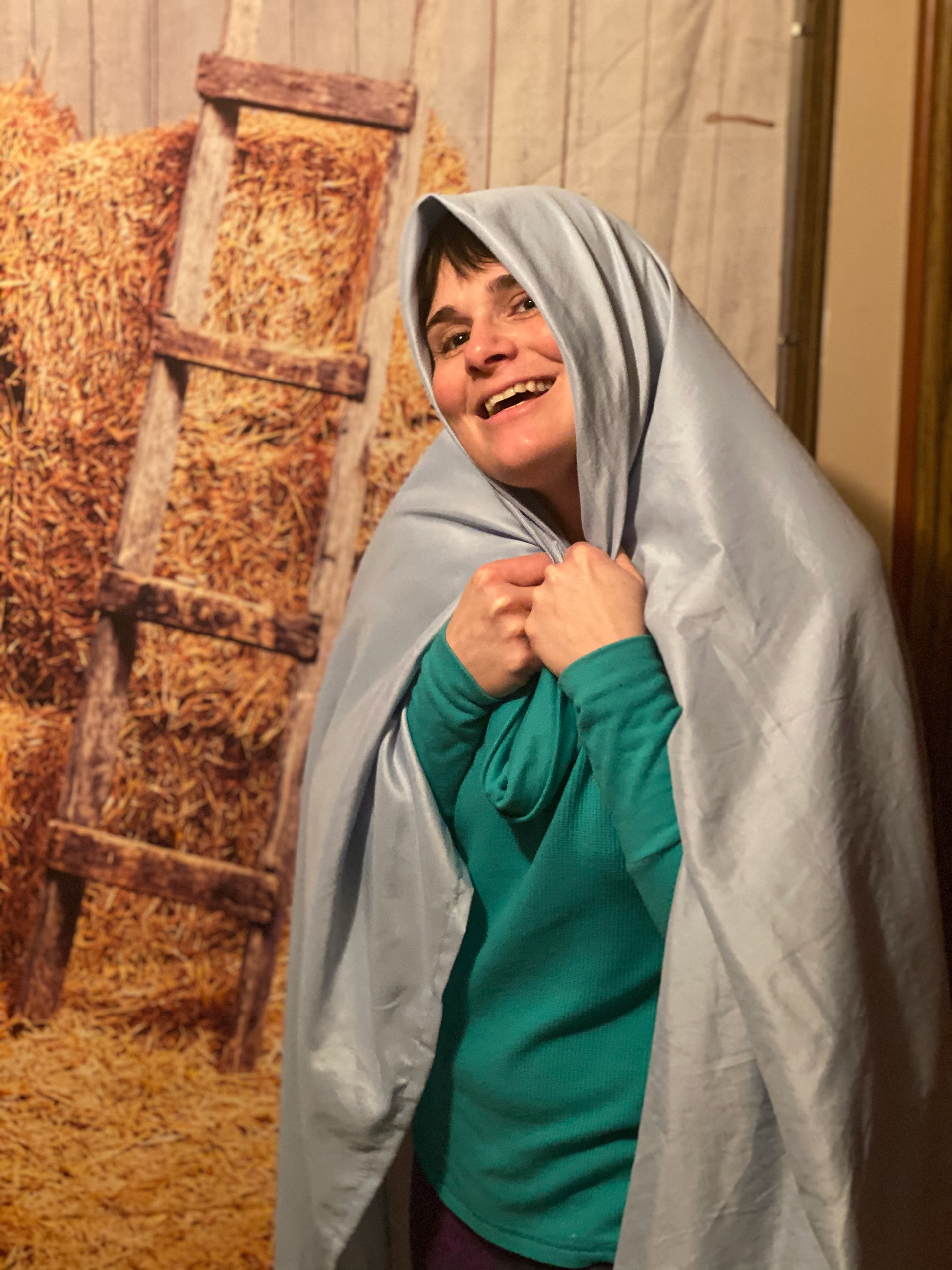 Mom had come across this cool backdrop. She hung it up in the kids' room. Naturally, she wanted to do a "manger" photo shoot with Freyja, our newborn queen. We took some time to practice and "get in the spirit".